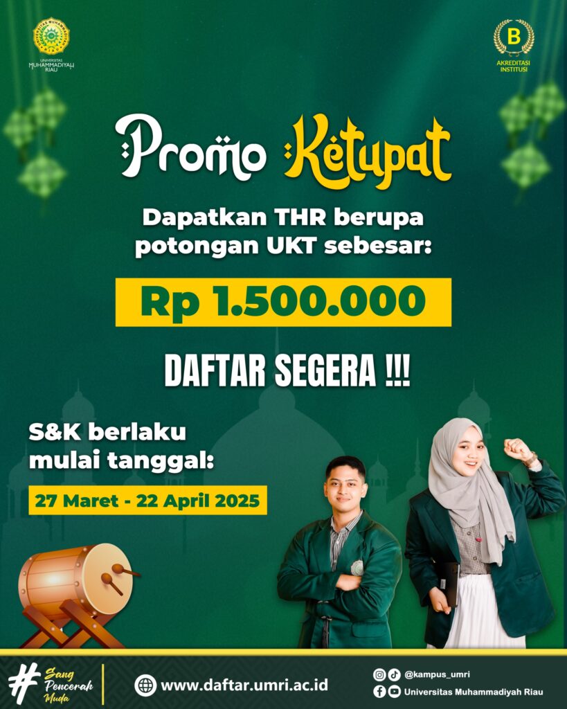 BeritaDapatkan THR Berupa Potongan UKT Mari Untuk dapat Daftar Segera Ke UMRI Fakultas Hukum UMRI1 year ago1 year ago01 mins Dapatkan THR Berupa Potongan UKT Mari Untuk dapat Daftar Segera Ke UMRI Post navigation Previous: Milad Ke-10 Fakultas Hukum UMRI Gelar Seminar Nasional Hadirkan M. Busyro MuqoddasNext: PMB Fakultas Hukum TA 2026/2027 Telah dibuka Ayo bergabung ke Fakultas Hukum UMRI dan menjadi bagian dari Sang Pencerah Muda UMRI