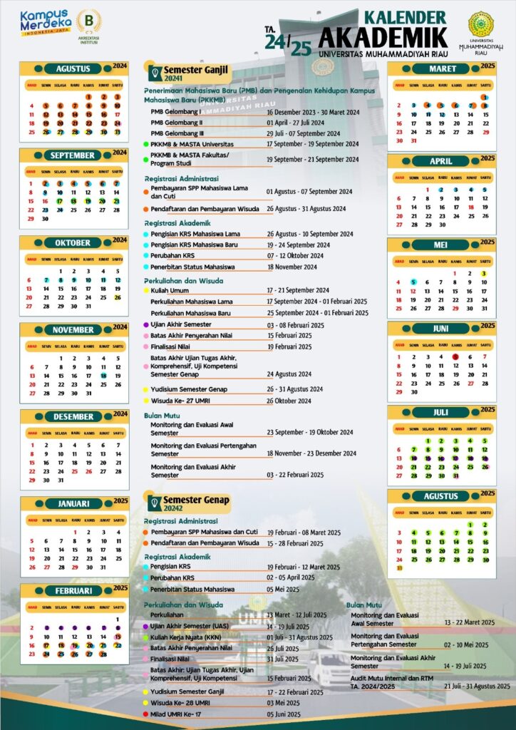 PENETAPAN KALENDER AKADEMIK UNIVERSITAS MUHAMMADIYAH RIAU TAHUN AKADEMIK 2024/2025